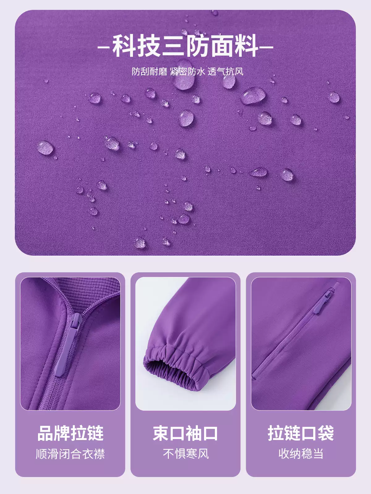 紫色防静电冲锋衣工作服外套企业团体服员工装防水耐脏夹克定制