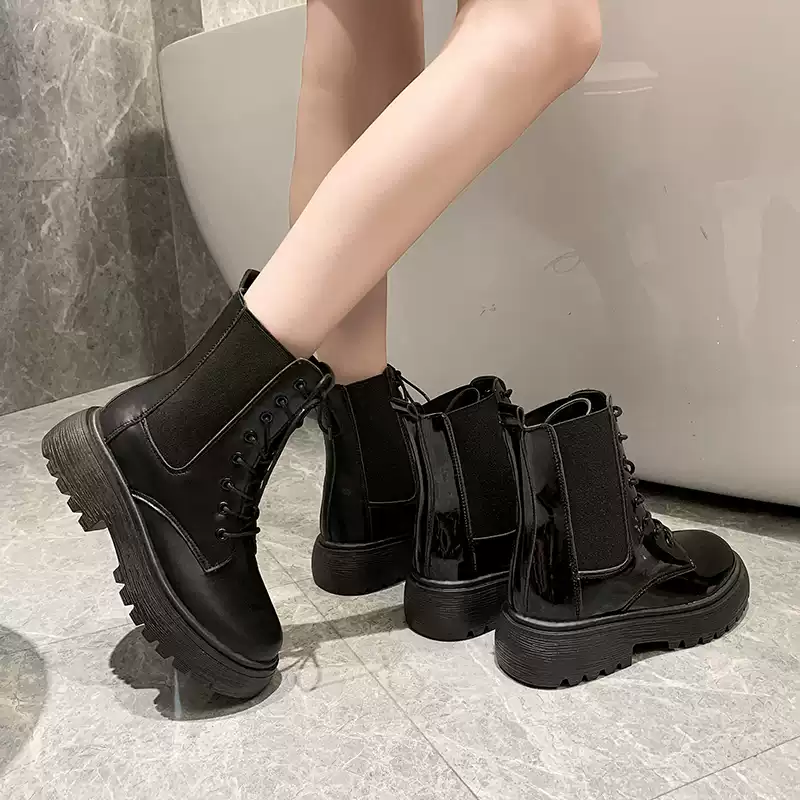瘦瘦靴加绒小个子马丁靴女2025年秋冬新款百搭黑色英伦风短靴子