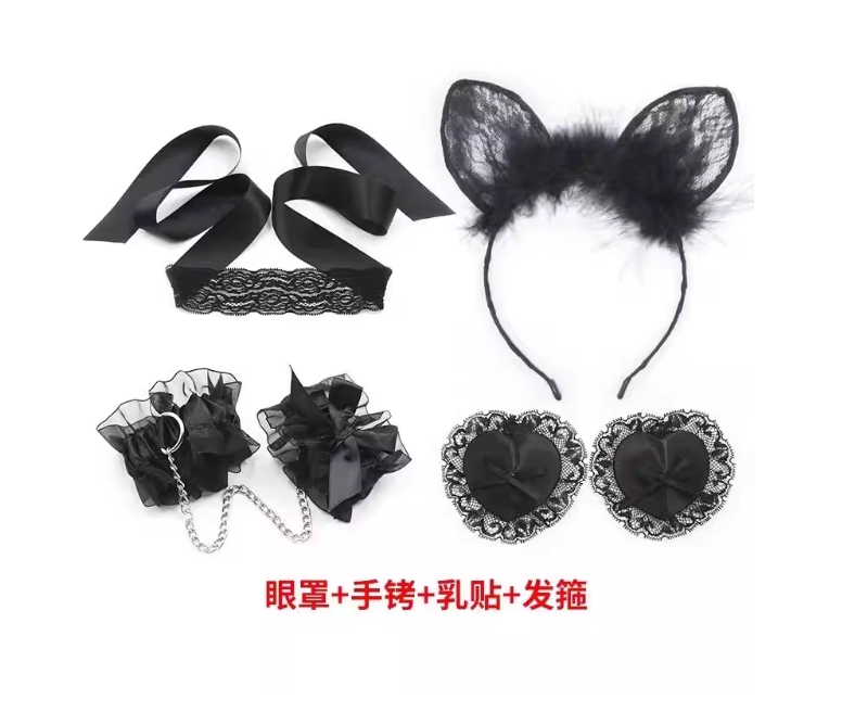 蕾丝眼罩猫耳套装女面罩黑色性感禁欲系遮光丝带睡眠手铐情调发箍
