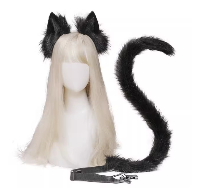 尾巴装饰猫耳朵套装jk道具儿童绑带发箍成人女毛茸茸狐狸cos道具