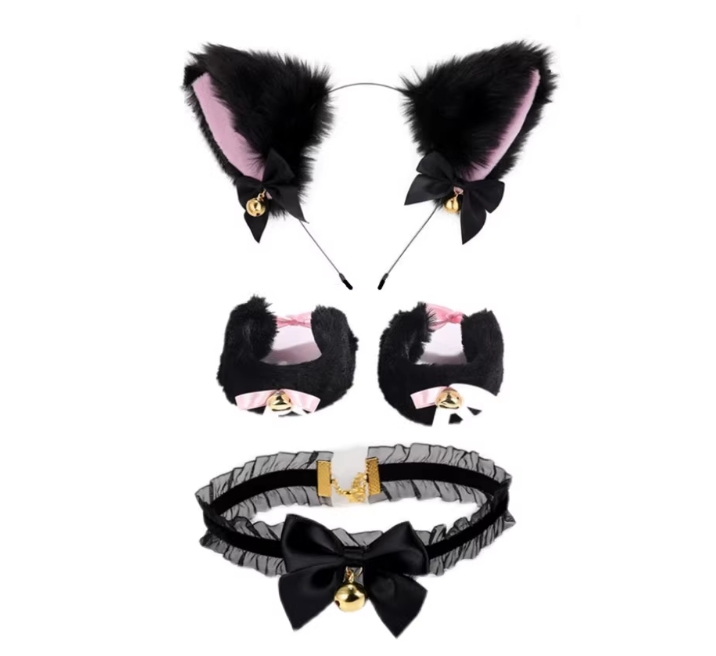 猫耳朵铃铛发箍手环颈圈套装猫尾巴套装兽耳头饰道具头箍cos配饰