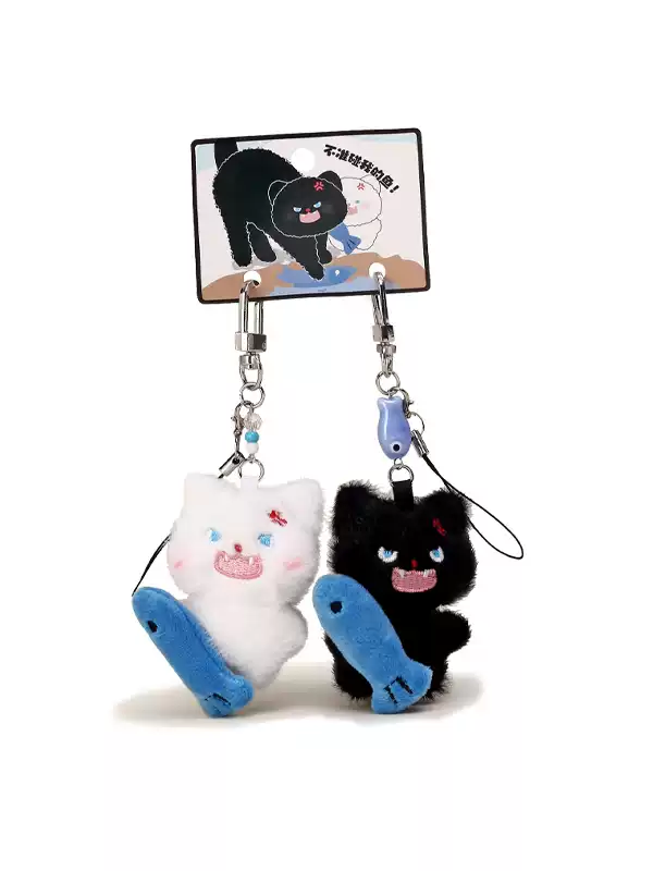 原创一对炸毛小猫鱼毛绒公仔书包包挂件双人闺蜜情侣钥匙扣女