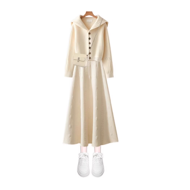 大码春秋女高级温柔气质针织衫韩系显瘦高腰半身裙套装女两件套