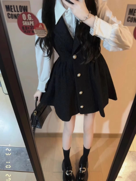 秋装搭配一整套御姐气质女神范高级感小香风衬衫背带裙两件套装女