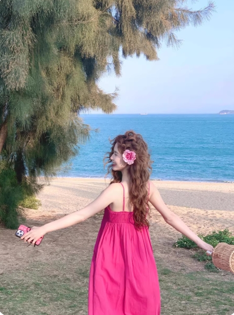 多巴胺甜美气质宽松高腰吊带连衣裙女夏三亚旅游海边度假沙滩长裙