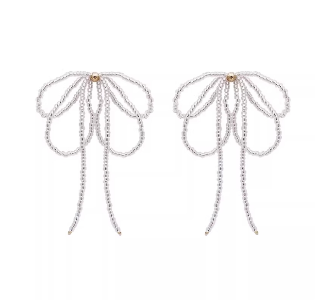 日韩串珠蝴蝶结耳环女2025年新款潮高级感小众设计感耳饰气质耳坠
