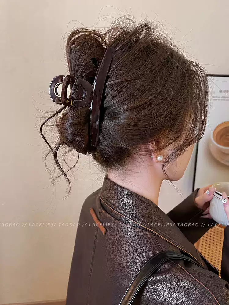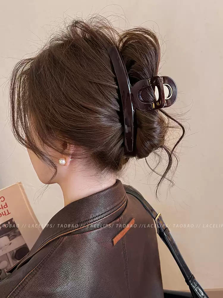 高级感巧克力棕一字抓夹大号鲨鱼夹发夹女后脑勺2025新款夹子发饰