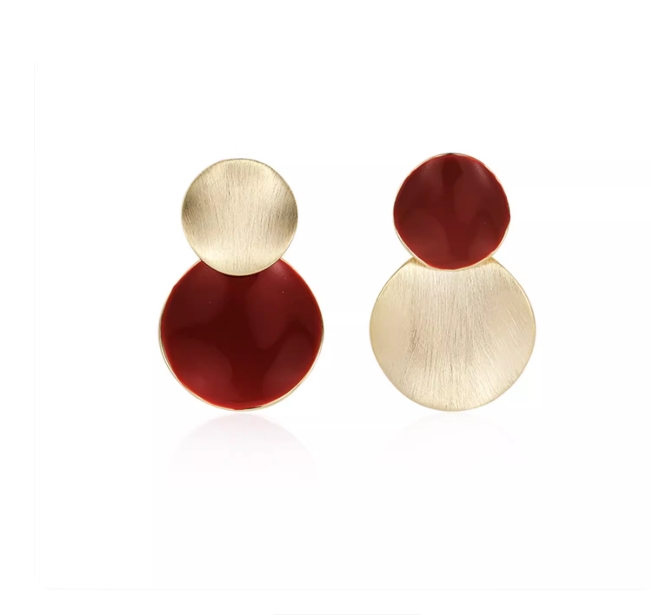 秋冬撞色圆片耳钉高级感轻奢气质耳环女小众设计夸张时髦独特耳饰