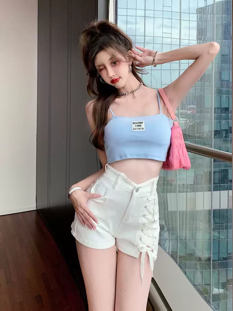 网红牛仔短裤女夏季2025新款绑带高腰显瘦辣妹a字时尚浅色热裤ins