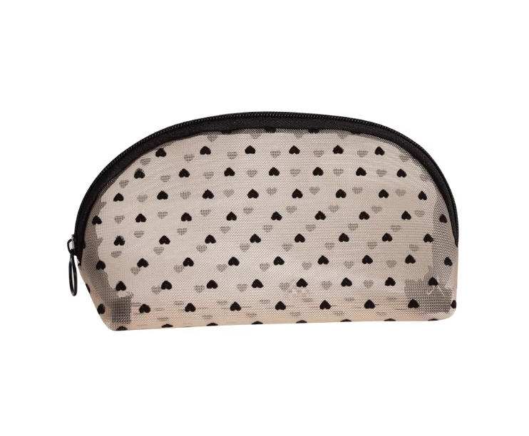 网纱化妆包爱心拉链便携随身口红补妆包大容量旅行收纳加大洗漱包