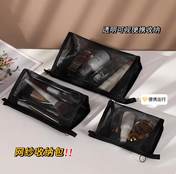 化妆包2025新款便携大容量透明网纱口红补妆卡包女旅行随身收纳袋