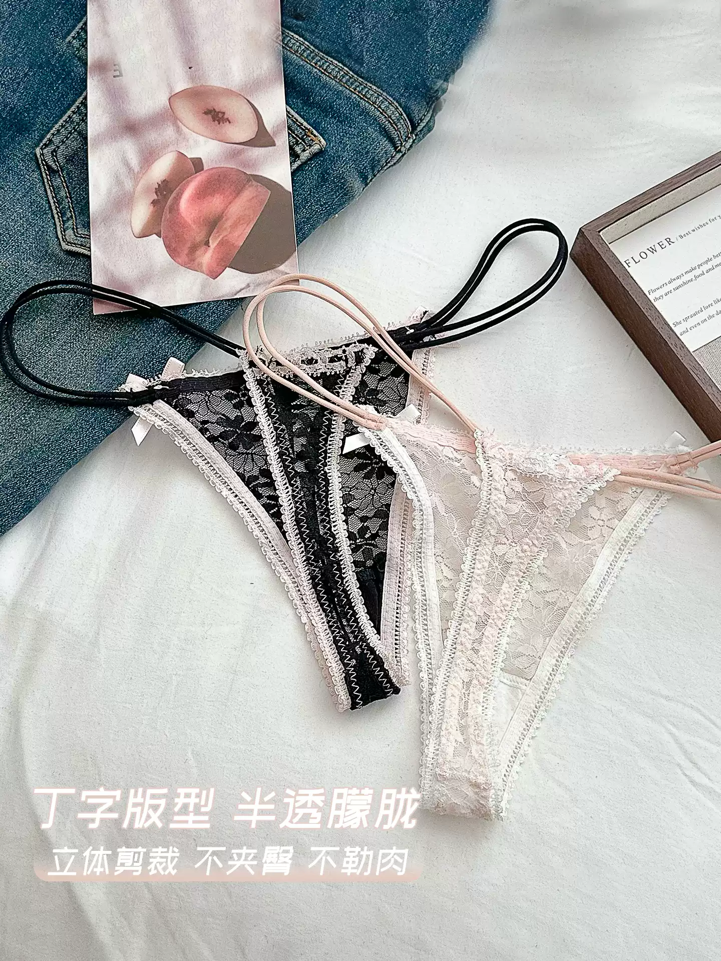 纯欲风蕾丝内裤女轻奢性感低腰蝴蝶结高开叉细带舒适丁字裤女