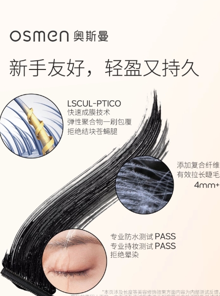 OSMEN/奥斯曼纤长持久睫毛膏防水防汗不晕染持妆8小时清新妆容