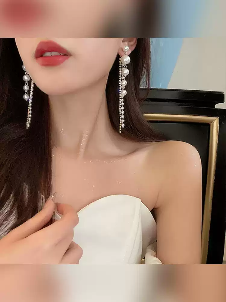 长款流苏珍珠耳钉女纯银2025年新款爆款高级感耳坠耳饰显脸瘦耳环