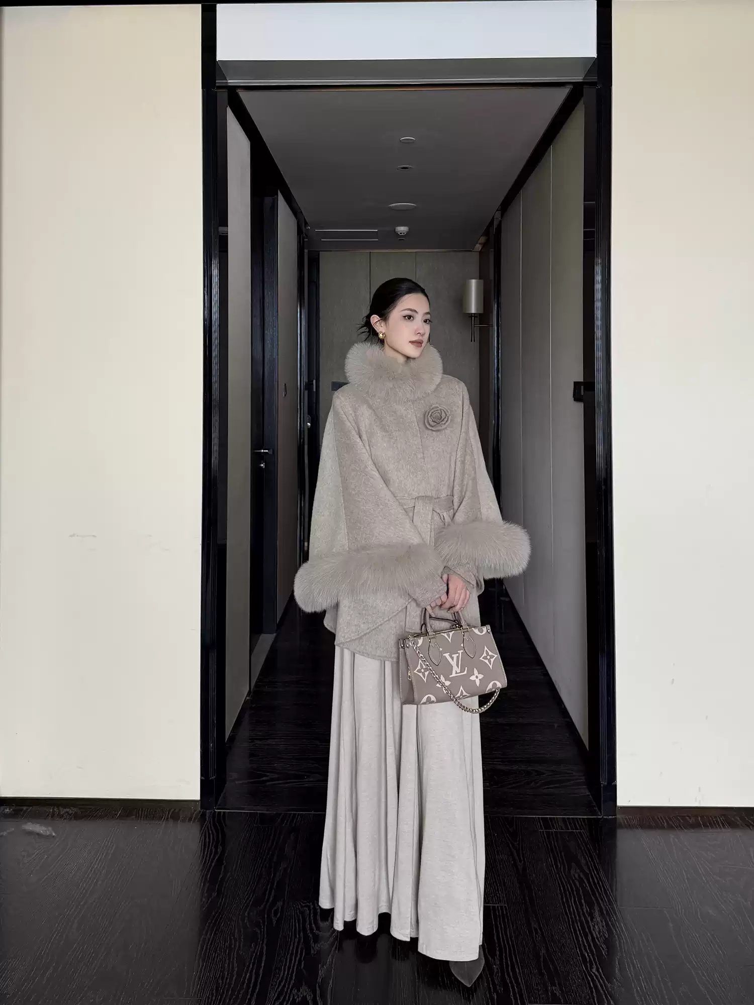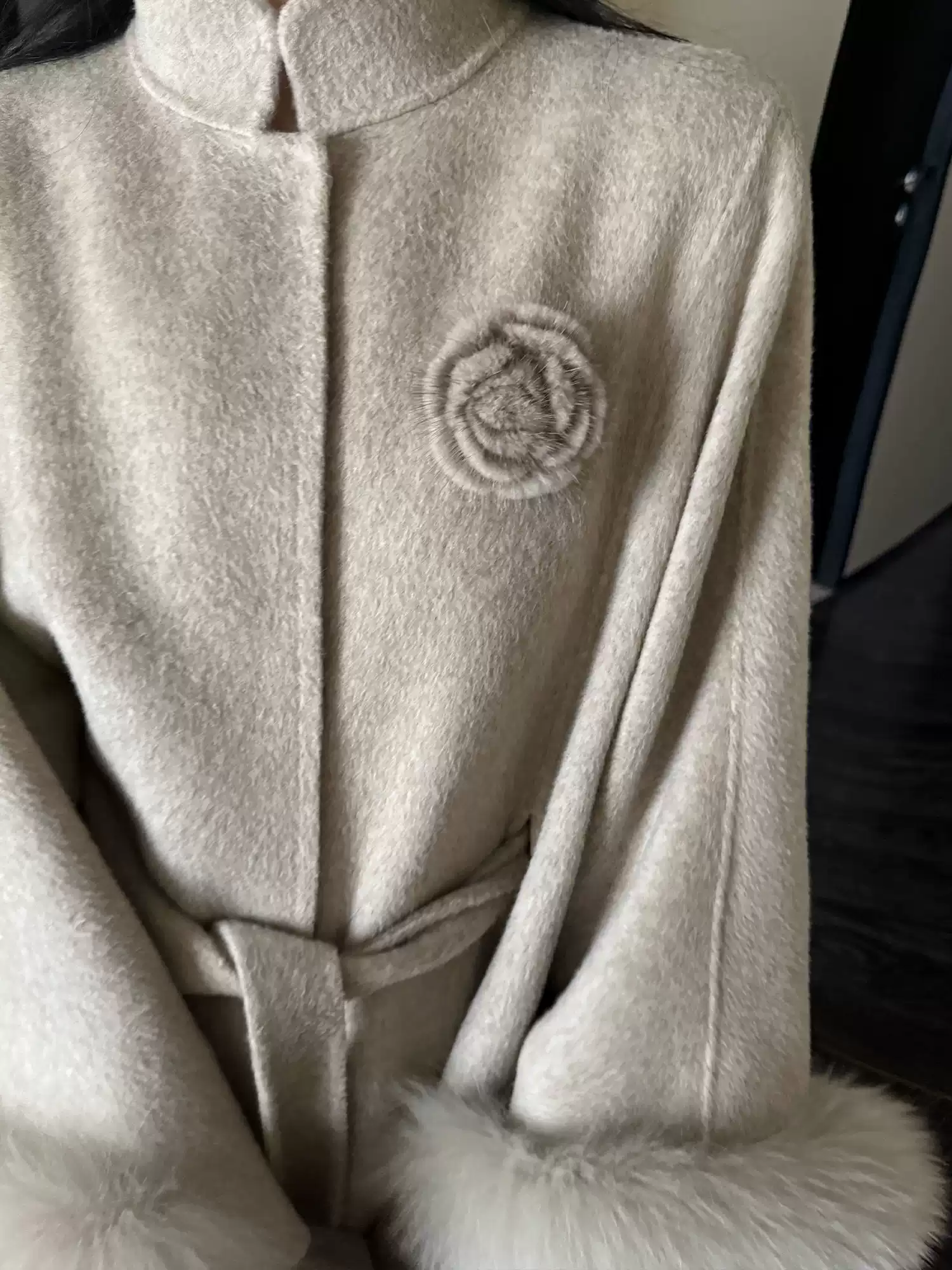 真水貂花胸针配大衣高级感轻奢气质设计感小众花朵佩饰
