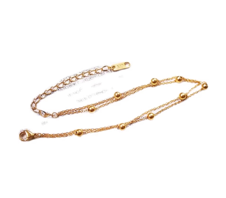 2022新款18K包金双层小金豆脚链女款简约百搭通勤不褪色饰品