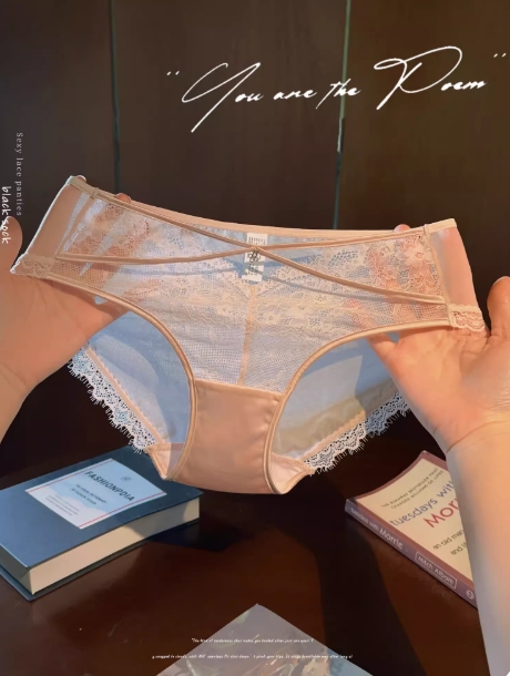 蕾丝网纱中腰女士内裤女2025新款透明性感无痕透气纯欲风三角裤女