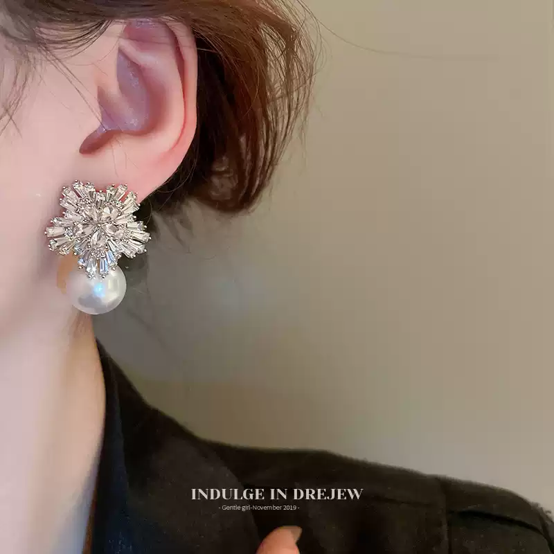 花朵珍珠耳环2025新款爆款高级感轻奢结婚婚纱气质大气雪花耳饰钉