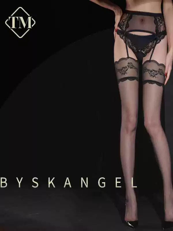 丝滑性感黑丝吊带袜高腰一体蕾丝美腿诱惑开档超薄带脚型丝袜