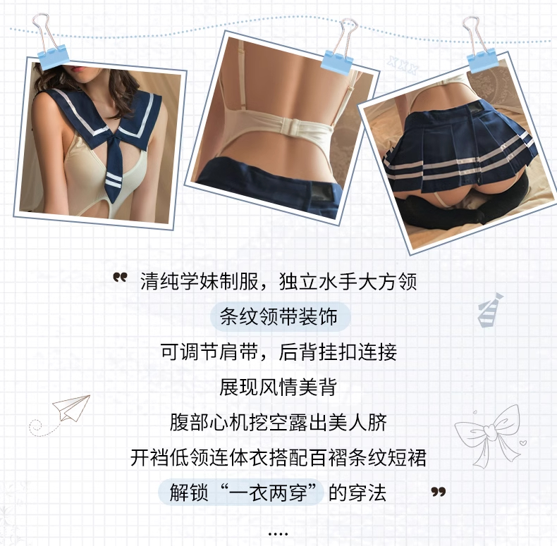 大码情趣内衣性感免脱校园JK水手制服诱惑床上挑逗纯欲小胸连体衣