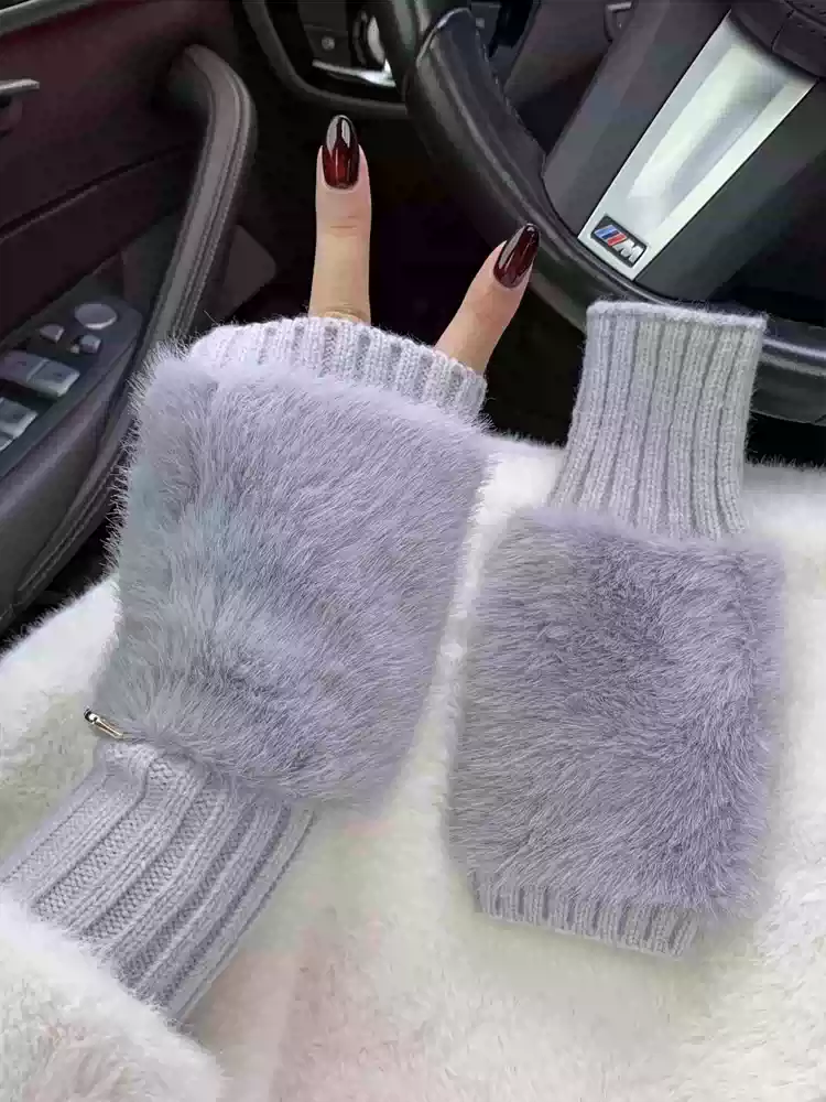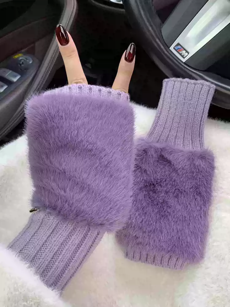 新款仿貂毛露指毛线手套护手腕高端大气办公写字骑行防寒手套