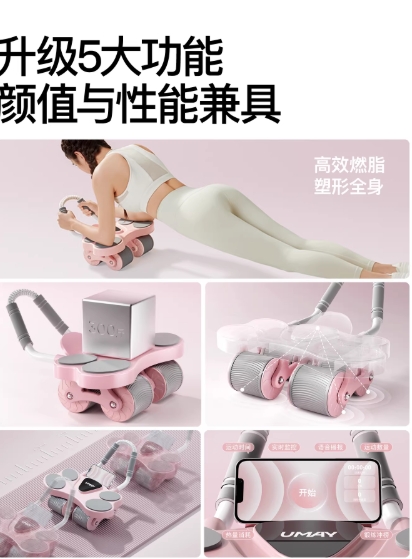 佑美四轮健腹轮2026新款自动回弹卷腹肌轮瘦肚子神器家用运动健身