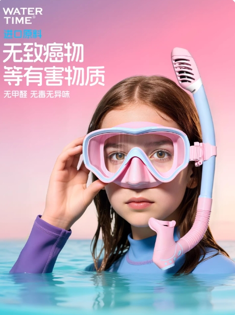 WaterTime儿童潜水面镜 男女童浮潜三宝水下呼吸管游泳镜面罩装备