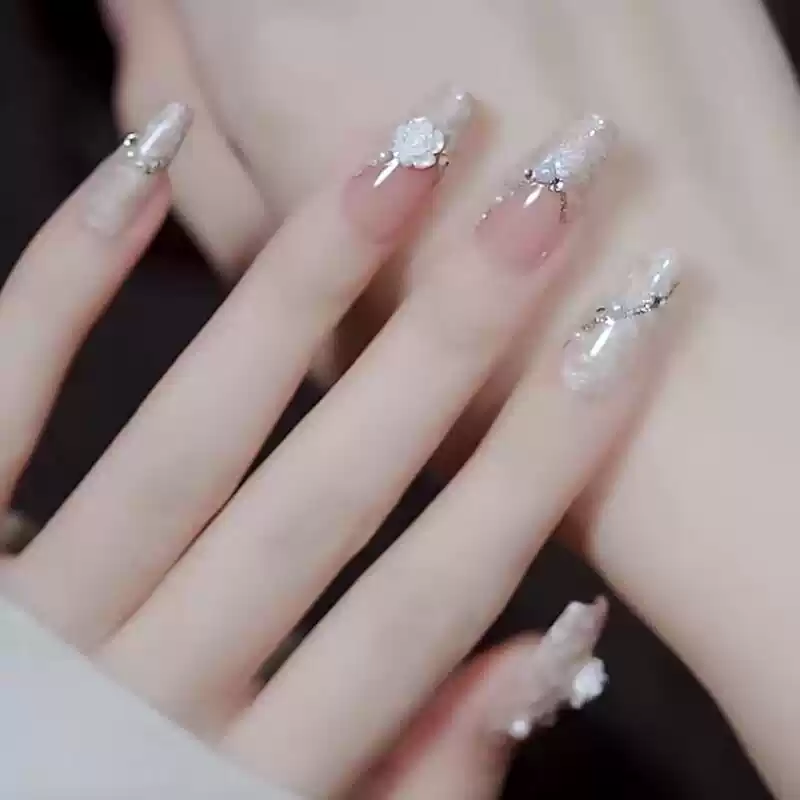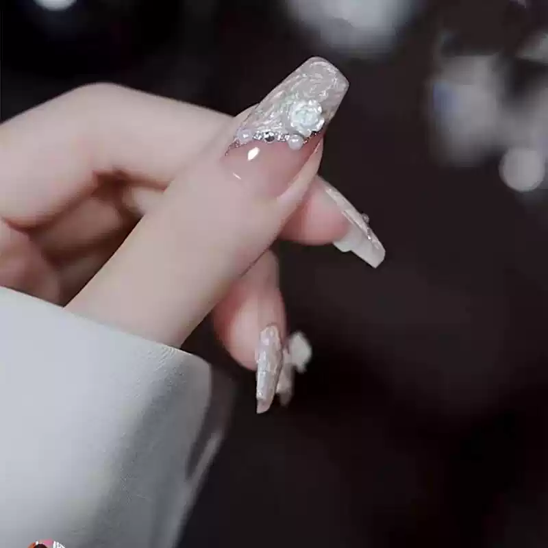 新款山茶花穿戴甲高级感显白手工定制婚纱照新娘美甲指甲贴片现货