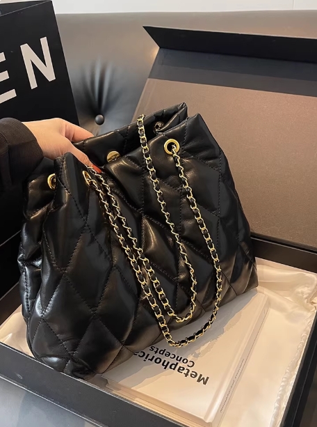 春夏菱格绣线大容量包包女2025新款百搭链条斜挎包时尚单肩水桶包