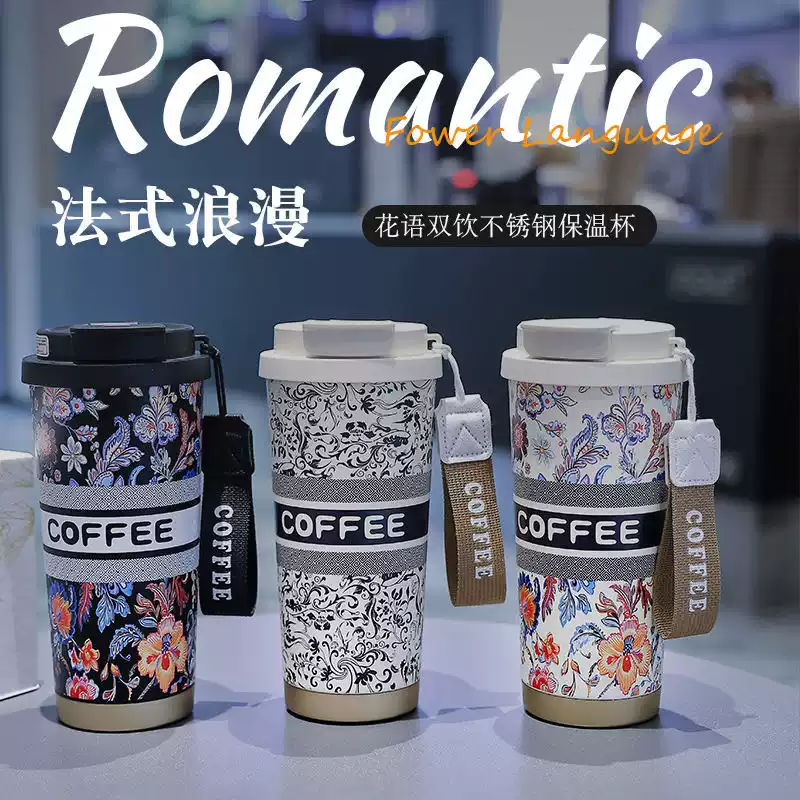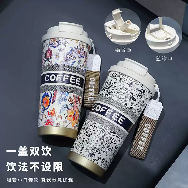 保温杯女高颜值2024新款水杯便携学生316不锈钢轻奢吸管咖啡杯子
