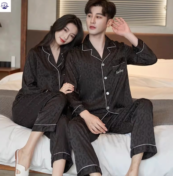 春秋睡衣情侣装一男一女高级感冰丝绸长袖长裤黑色ins风性感家居