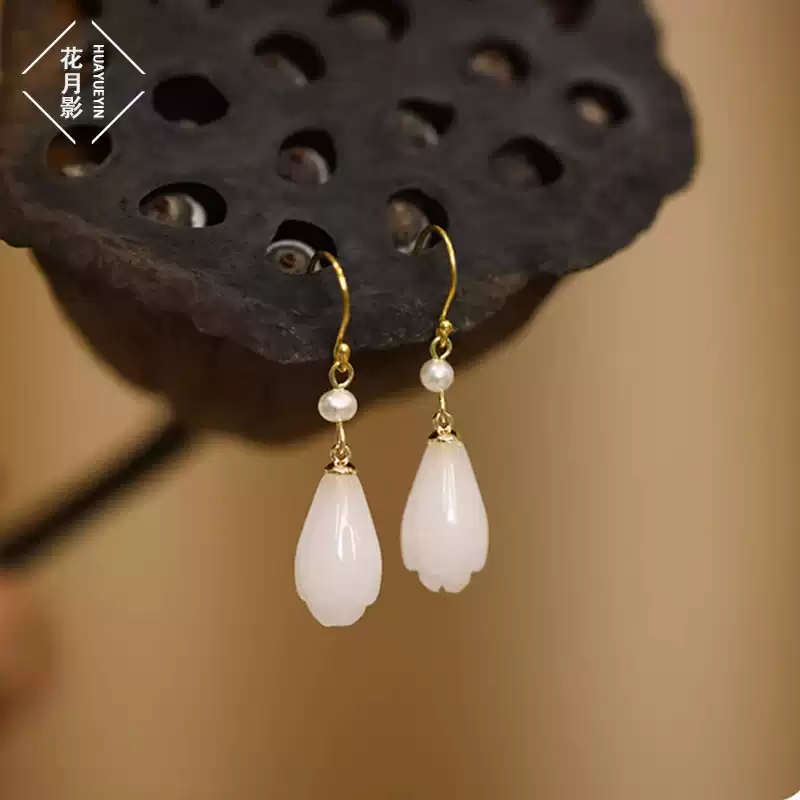 馨然白玉兰花耳环女复古高级感古风汉服配饰新中式