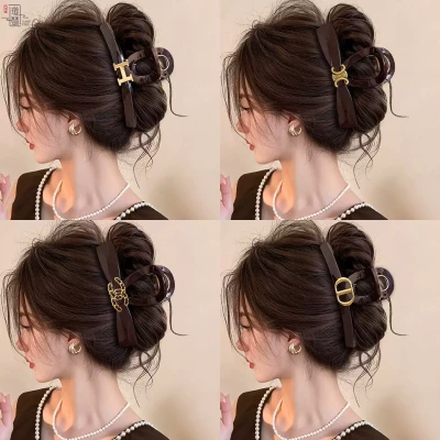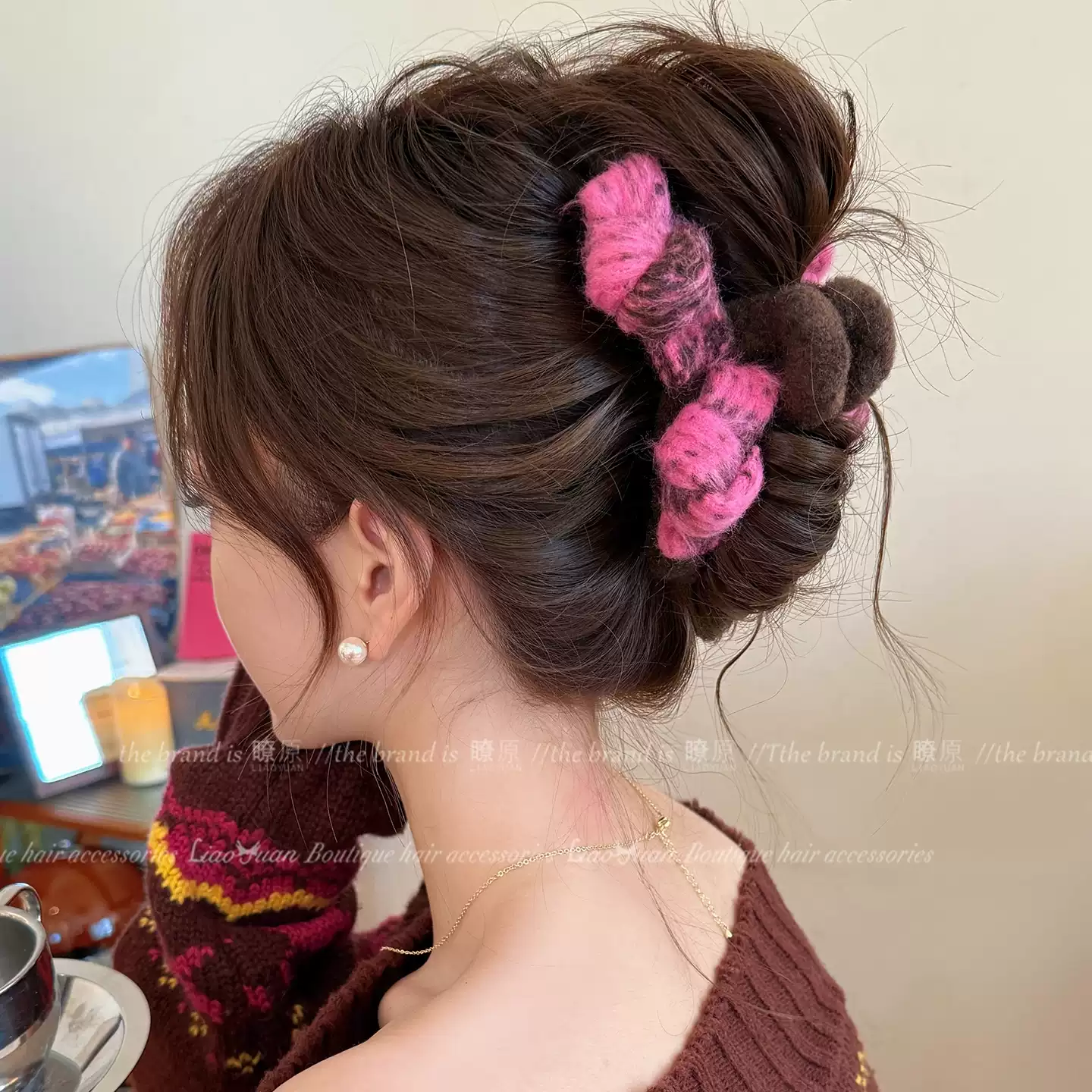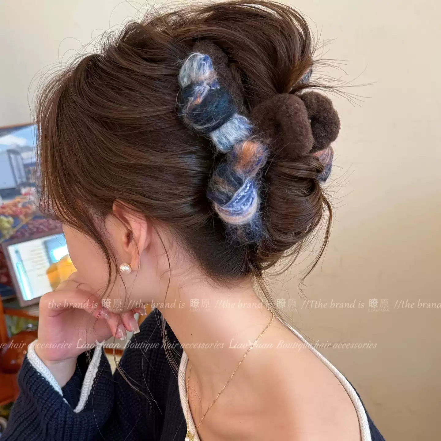 毛绒蝴蝶结抓夹女大号2025新款复古鲨鱼夹发量大发夹高级发饰