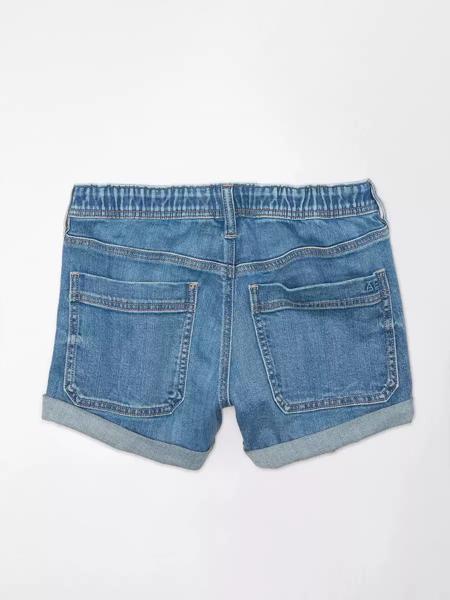 AEO美国鹰 夏季新款蓝色中低腰牛仔短裤女半松紧经典翻折边短裤潮