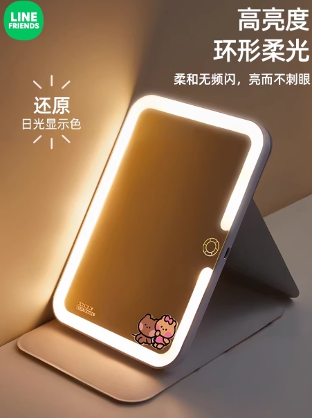 镜子LED高清化妆镜带灯便携折叠镜家用学生宿舍办公室桌面美妆镜