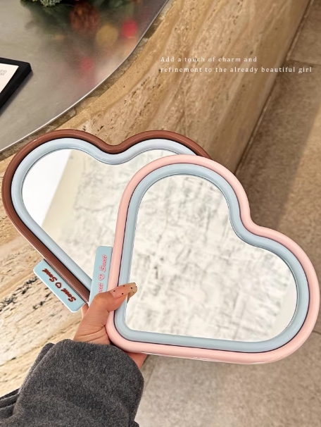 爱心小镜子化妆镜少女心学生宿舍桌面可立折叠梳妆镜家用随身便携