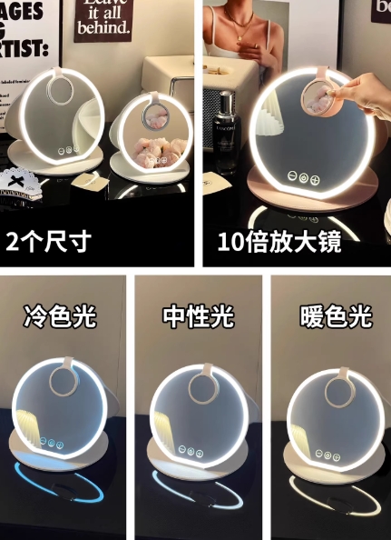 高清化妆镜带LED灯圆镜家用桌面台式可立小镜子女随身便携折叠镜