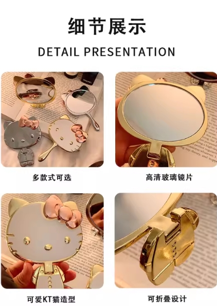 可爱猫小镜子女随身携带手持迷你化妆镜立体折叠补妆镜学生