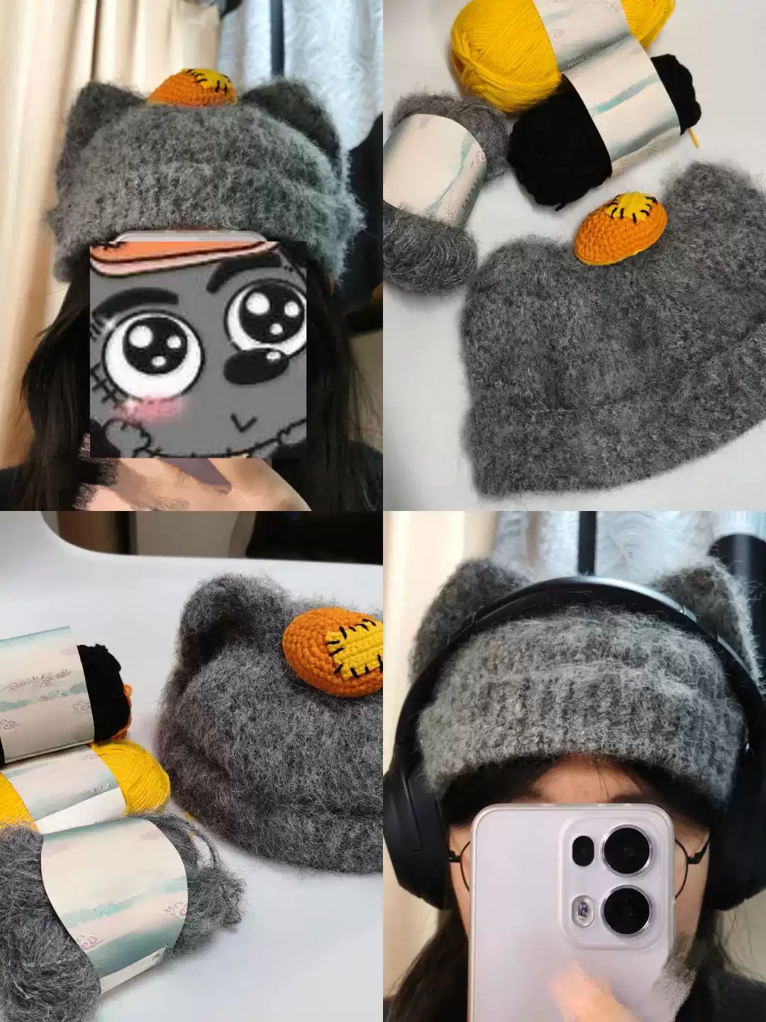可爱猫耳帽毛绒钩针diy钩织材料包秋冬保暖护耳毛线帽百搭显脸小