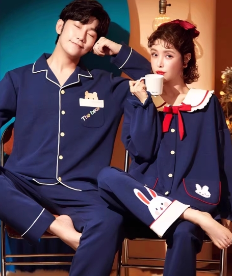 情侣睡衣长袖纯棉春秋款情侣装一男一女可外穿薄款秋冬家居服套装