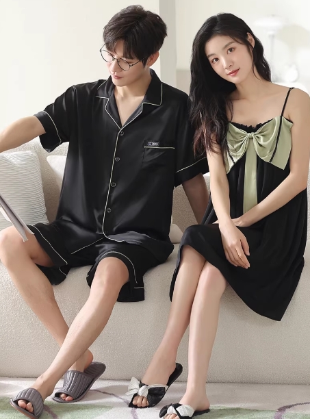 情侣睡衣夏季冰丝吊带睡裙纯欲风女高级感男士家居服夏天短袖套装