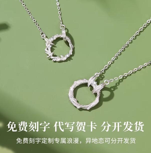999纯银情侣项链一对高级感小众情侣纪念意义情人节礼物送女男友