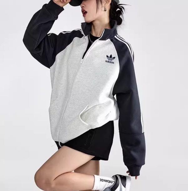 Adidas阿迪达斯外套女2025新款三叶草宽松休闲运动夹克开衫卫衣