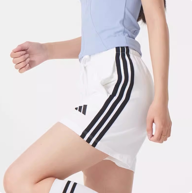 阿迪达斯三条杠运动短裤女白色夏季薄款高腰宽松休闲阔腿五分裤子