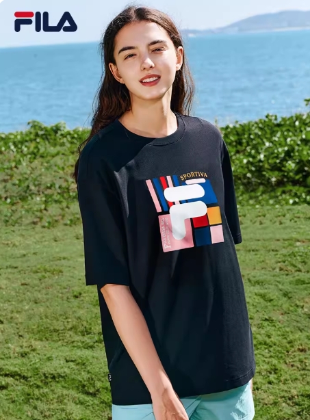 FILA斐乐官方女士短袖T恤夏季印花打底时尚针织衫运动上衣短袖衫