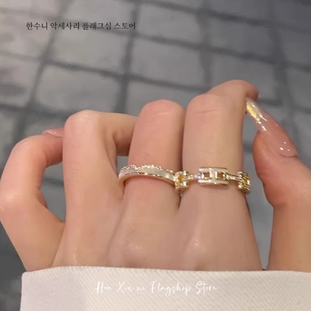 大爆款!轻奢名媛贝壳字母精致叠戴戒指女ins小众高级感时尚指环