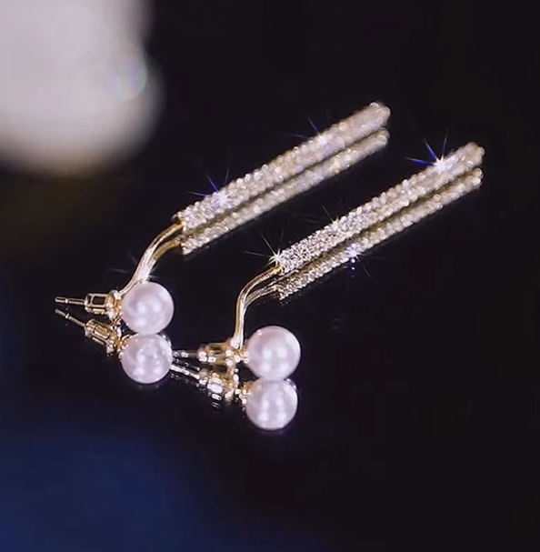 圆脸显瘦珍珠流苏耳环女轻奢小众设计精致耳钉高级感纯银耳线耳饰