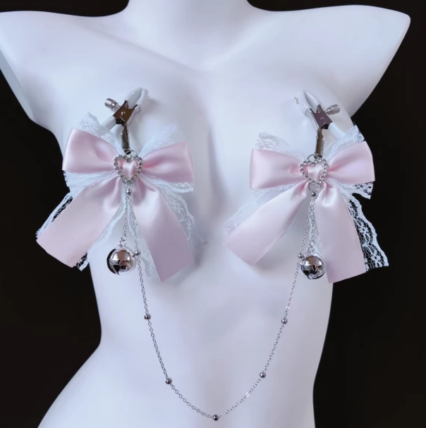 sm粉色蕾丝铃铛套装项圈牵引调情趣用品调教咪咪夹乳夹k9调教道具