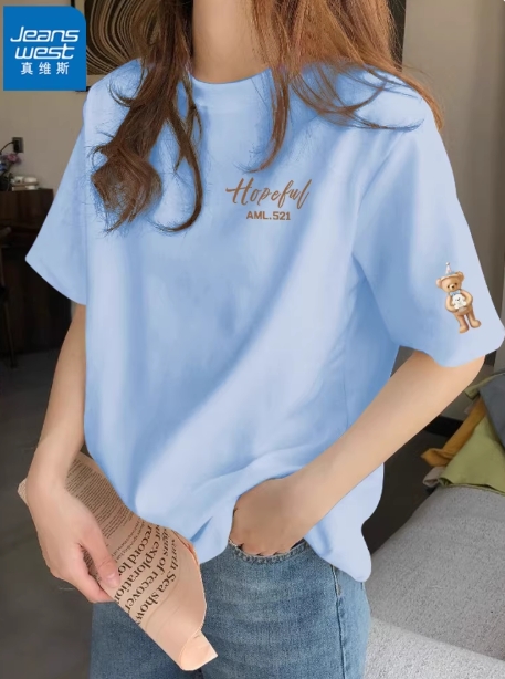 真维斯米色夏季休闲纯棉短袖T恤女2025新款设计感宽松半袖上衣服