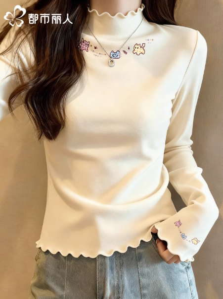 都市丽人木耳边绒德打底衫女内搭冬季2026新款高级感保暖长袖t恤
